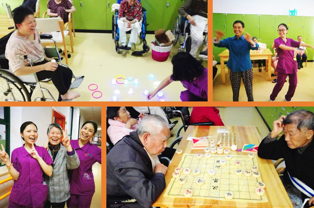 您當(dāng)前的位置:普親養(yǎng)老首頁 > 養(yǎng)老服務(wù) > 康樂生活 普親養(yǎng)老旗下各個養(yǎng)老機構(gòu)會根據(jù)老人的身體狀況、興趣愛好量身定制有益于老人身心健康的益智類活動、美工、繪畫類活動、閑情娛樂類活動、室內(nèi)球類運動、康復(fù)訓(xùn)練等,讓老人在安全、舒適的生活之余,獲得價值感、存在感和滿足感,真正意義上“老有所養(yǎng)、老有所樂”。