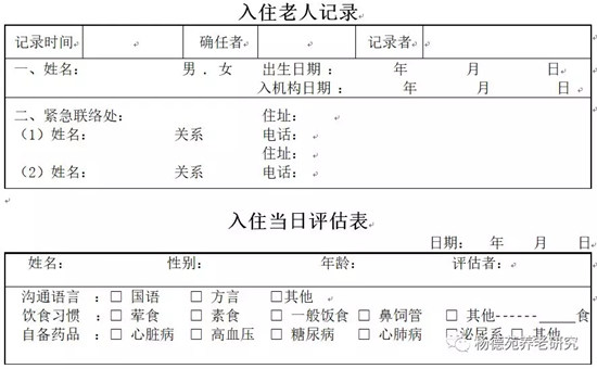 。2)新入住老人現(xiàn)狀確認(rèn)。