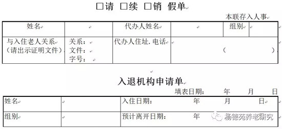 老人或家屬提出入住申請、辦理入住手續(xù)或離開機構(gòu)時的操作事項。
