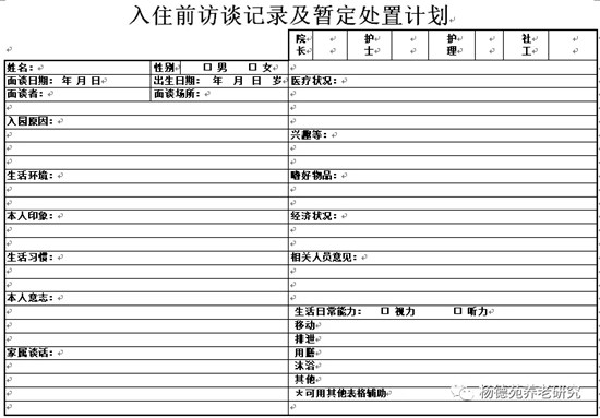 5、入住前面談記錄:入住面談?wù){(diào)查表。