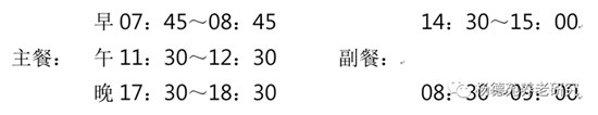 1、每日提供三餐主餐及二餐副餐,用餐時間:請準(zhǔn)時入位。
