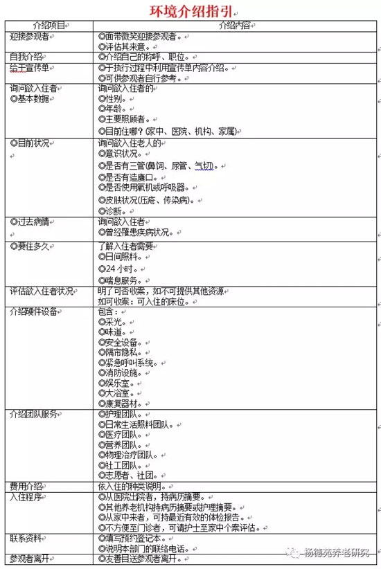 。2)借助說明會(家屬),耐心引導(dǎo)初期入住的老人融入機構(gòu)式生活。如果遇到抗性強的老人,可以斟酌考慮家屬短期陪住。