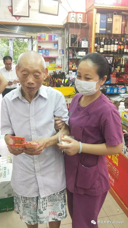 ▲老人身體條件允許的情況下,符英會(huì)陪老人出門逛逛商店,購(gòu)物成功的老人可開(kāi)心了。