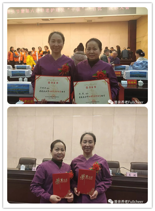 2018年11月23日,長(zhǎng)沙市舉辦第四屆養(yǎng)老護(hù)理員節(jié)活動(dòng)暨長(zhǎng)沙市第六屆養(yǎng)老護(hù)理員“十佳”、“百優(yōu)”表彰大會(huì),長(zhǎng)沙市普親老年養(yǎng)護(hù)院的于彩云和長(zhǎng)沙市普親馮家沖社區(qū)老年養(yǎng)護(hù)中心的符英兩位護(hù)理員榮獲長(zhǎng)沙市第六屆養(yǎng)老護(hù)理員“百優(yōu)護(hù)理員”稱號(hào)。