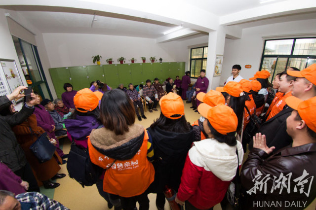 (志愿者們?cè)谄沼H養(yǎng)老機(jī)構(gòu)給老人表演節(jié)目)