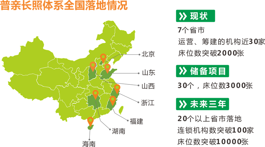 公司目前已運(yùn)營(yíng)、籌建及擬簽約的政府注資的公立養(yǎng)老機(jī)構(gòu)近30家,分布于湖南、海南、北京、浙江、山西、山東、福建等區(qū)域,是國(guó)內(nèi)為數(shù)不多的全國(guó)性養(yǎng)老服務(wù)連鎖企業(yè)和失能、失智養(yǎng)老服務(wù)細(xì)分領(lǐng)域知名品牌——普親養(yǎng)老,失能失智老人養(yǎng)護(hù)專家。