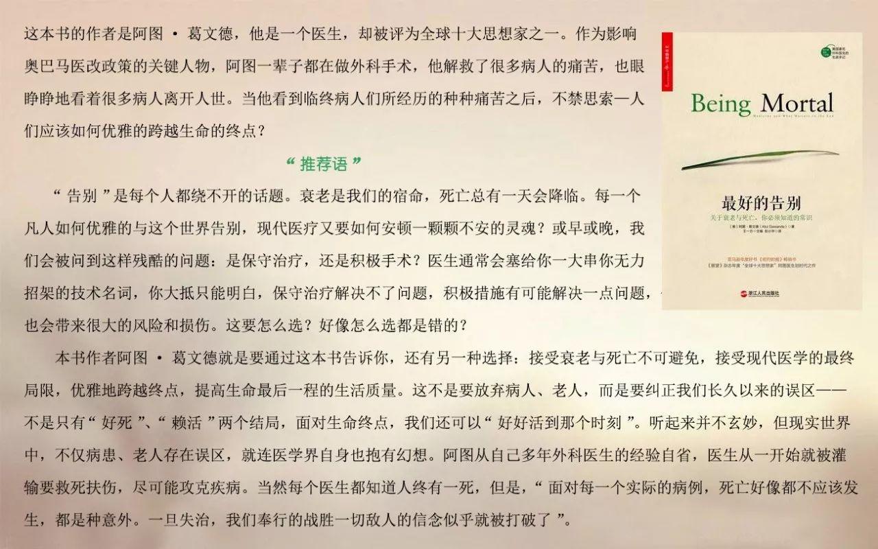 《好的告別》被稱為每個(gè)人在50歲前必讀的書,獲譽(yù)無(wú)數(shù) ,也被奧巴馬選入了2014年感恩節(jié)的購(gòu)書書單。