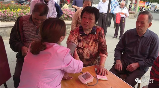 4月14日,長(zhǎng)汀普親老年養(yǎng)護(hù)院在三元閣廣場(chǎng)舉辦免費(fèi)健康檢查及健康宣傳活動(dòng);顒(dòng)現(xiàn)場(chǎng),醫(yī)生們認(rèn)真地進(jìn)行免費(fèi)測(cè)量血壓與健康指導(dǎo),并發(fā)放相關(guān)宣傳冊(cè),受到廣大老年人的歡迎。