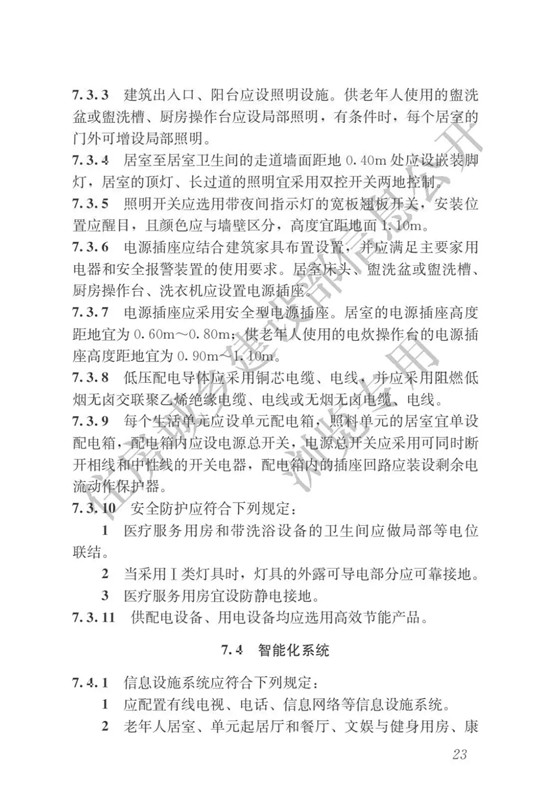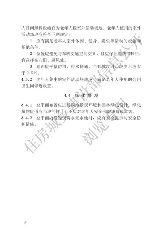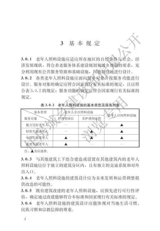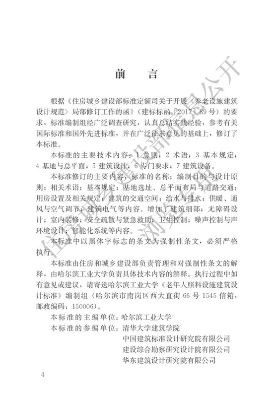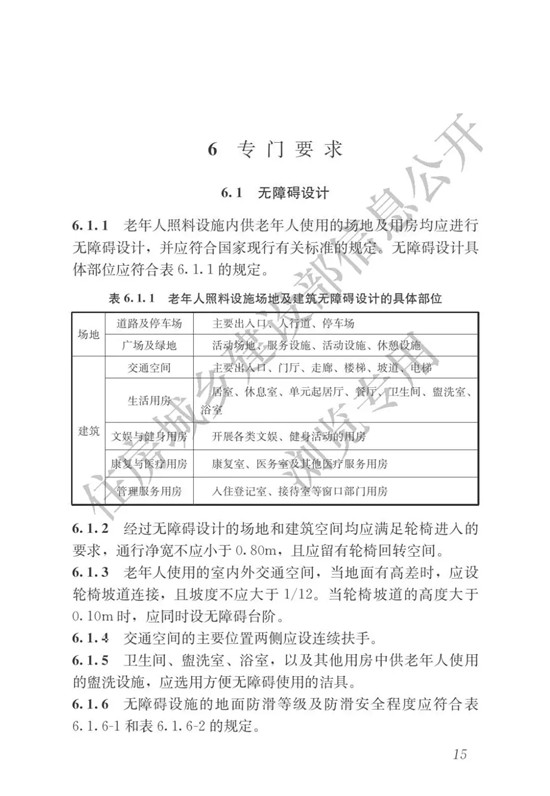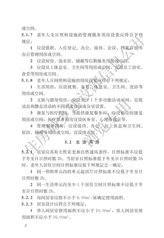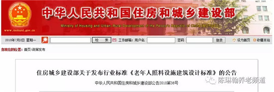 現(xiàn)批準(zhǔn)《老年人照料設(shè)施建筑設(shè)計標(biāo)準(zhǔn)》為行業(yè)標(biāo)準(zhǔn),編號為JGJ450-2018,自2018年10月1日起實施。其中,第4.2.4、5.1.2、5.6.4、5.6.6、6.5.3、7.2.5條為強制性條文,必須嚴(yán)格執(zhí)行。原國家標(biāo)準(zhǔn)《養(yǎng)老設(shè)施建筑設(shè)計規(guī)范》GB50867-2013和《老年人居住建筑設(shè)計規(guī)范》GB50340-2016同時廢止。