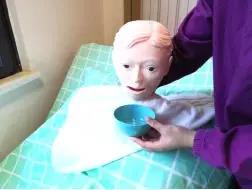2)老人的準(zhǔn)備:取側(cè)臥位或平臥位,頭偏向一側(cè)(朝向照護(hù)員)。