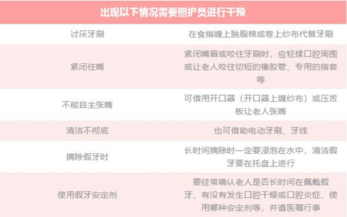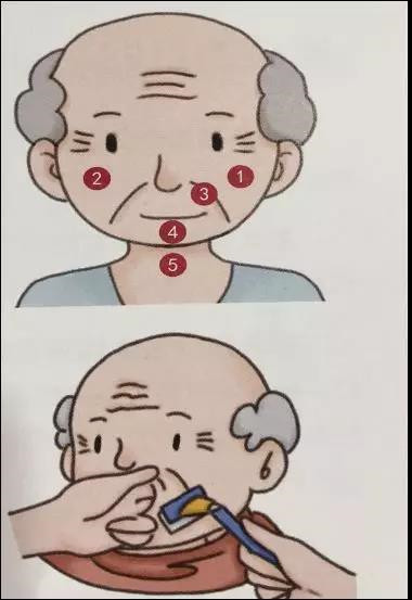 1)準(zhǔn)備完畢,讓老人漱口,濕潤口腔;