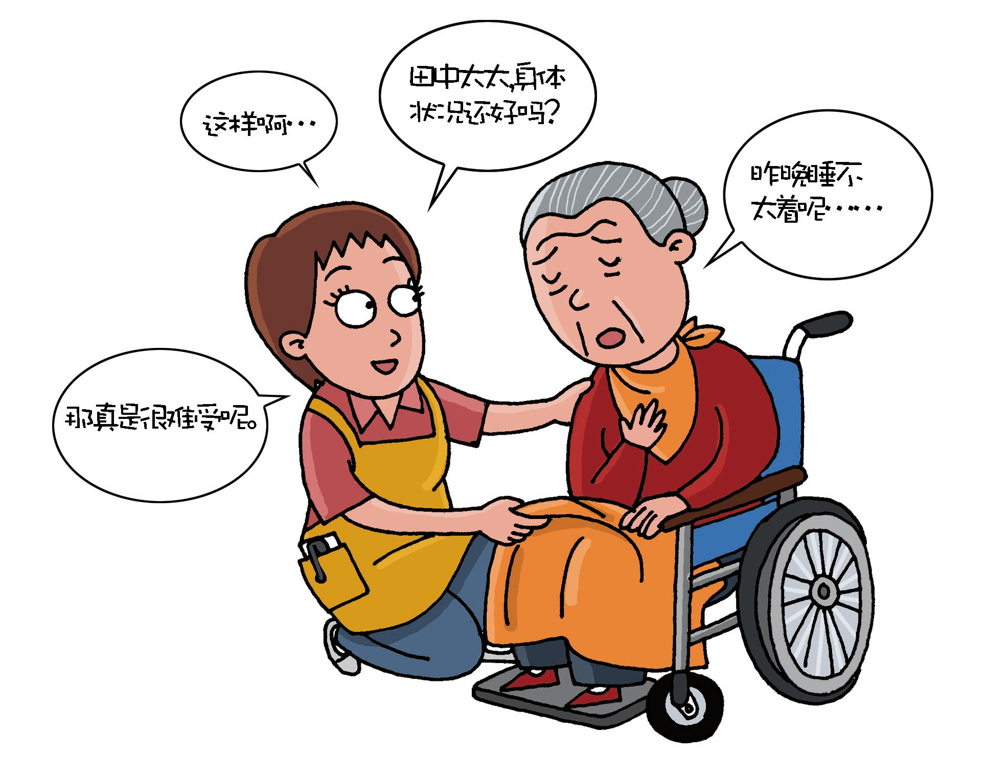 即使沒有打招呼,也不要松懈對被護理人的觀察和關(guān)懷。