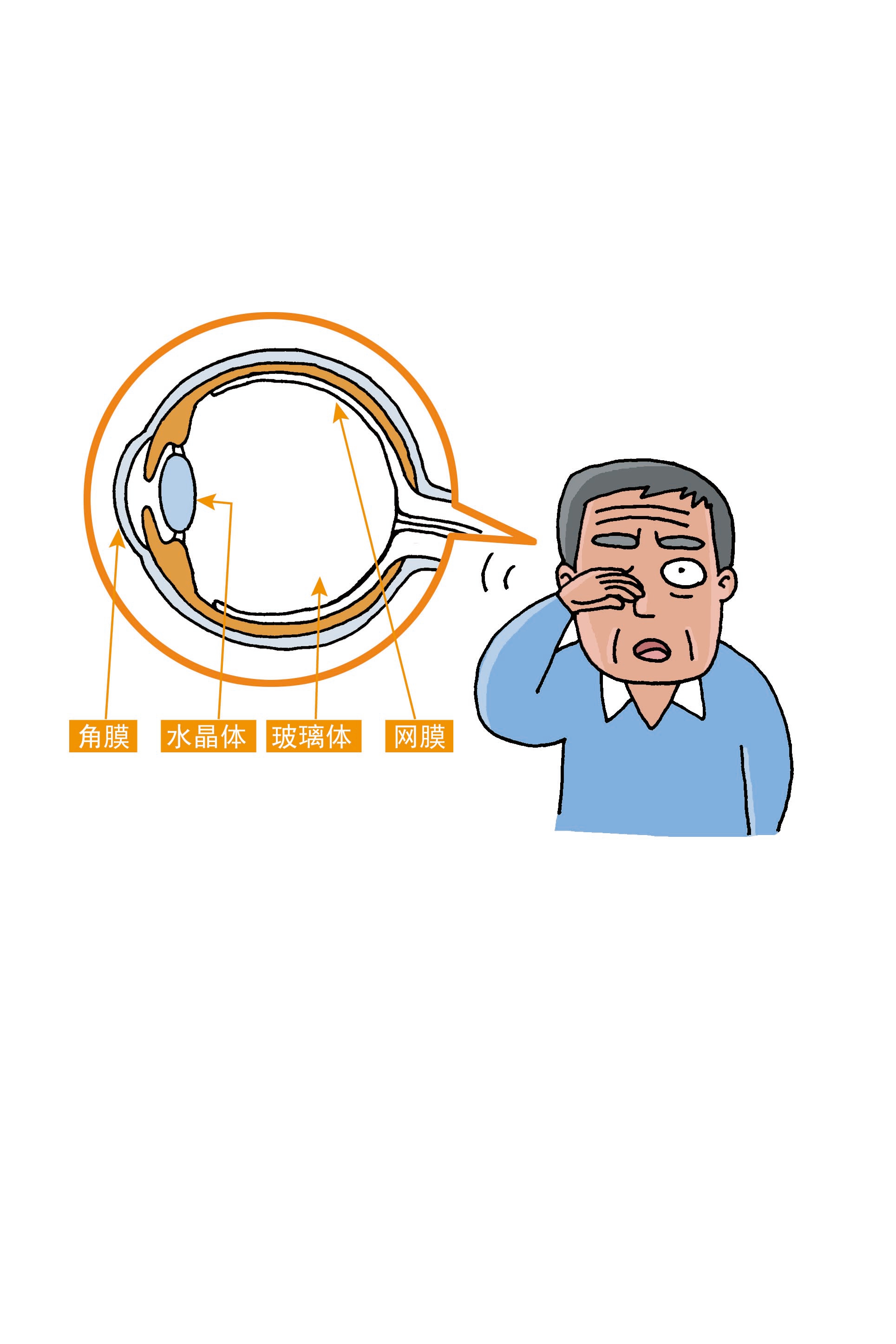 白內(nèi)障:隨著年齡增加,晶狀體會渾濁。糖尿病人要特別注意。