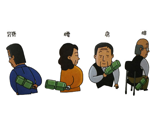 、劬鶆虻嘏拇虿弊、背部、腰、膝蓋和腿肚子等部位吧。