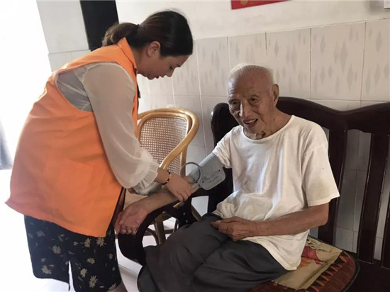 老年能力評(píng)估開展完后,幫扶小組為奶奶量血壓、剪指甲。