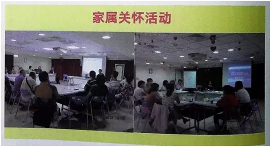 除了照護(hù)老人,還有針對(duì)家屬的系列活動(dòng)。養(yǎng)護(hù)中心會(huì)定期舉辦家屬座談會(huì),針對(duì)長輩在中心里的情況,通過座談會(huì)的形式進(jìn)行團(tuán)體分享。這個(gè)過程中會(huì)告訴家人養(yǎng)護(hù)中心的整個(gè)照顧目標(biāo),以及需要他們一起努力的部分,希望營造一個(gè)家庭式的環(huán)境。養(yǎng)護(hù)中心每個(gè)禮拜六會(huì)在日間照護(hù)中心做一個(gè)開放的活動(dòng),有很多社區(qū)的家屬參加,一起互動(dòng)。