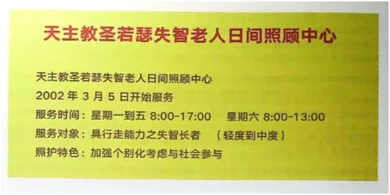 圣若瑟失智老人日間照顧中心于2002年3月份開始提供服務(wù)。從周一到周五白天的時(shí)間,加上周六半天,針對(duì)比較輕度的失智癥老人進(jìn)行服務(wù)。
