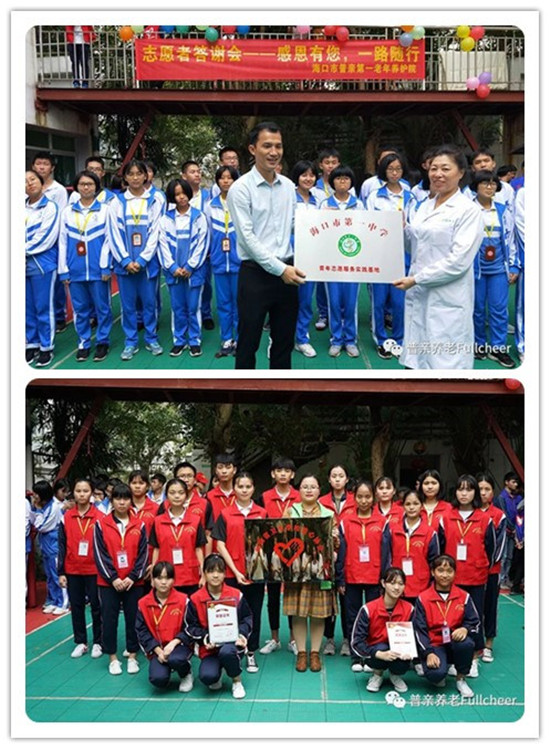 活動到最后,?谑械谝恢袑W及海南省衛(wèi)生學校授牌海口市普親老年養(yǎng)護中心志愿者實踐基地牌匾。目前?谑衅沼H第一老年養(yǎng)護院已收獲5塊志愿者實踐基地牌匾。