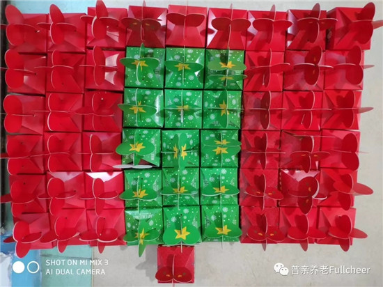 圣誕節(jié),從一棵手工DIY的圣誕樹開始。像往常一樣,從站長、助理到護理員,全體工作人員出動,為老人戴上圣誕帽,將香脆可口的蘋果分發(fā)給老人,取其中寓意,祝愿我們的老人能夠平平安安、開開心心。