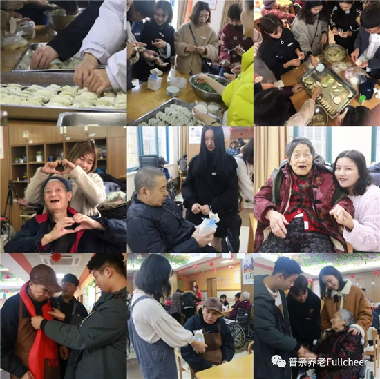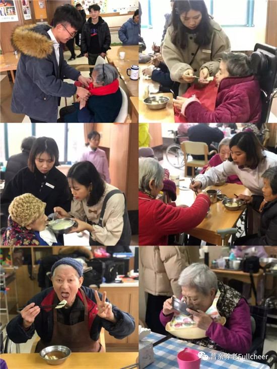 莘莘學子的到來,讓本就熱鬧的節(jié)日更添人氣。大家一起包餃子,體驗動手的樂趣,一起吃餃子,感受冬至的溫暖,有的老人沒辦法自主進食,同學們便耐心地為老人喂食。