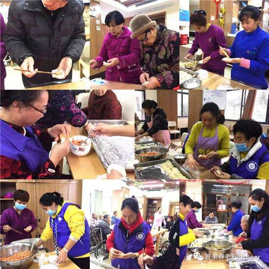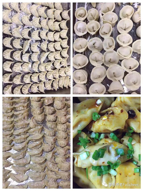 平安夜,機構(gòu)組織老人、工作人員還有志愿者一起包餃子,可謂是把洋節(jié)過出了中國風味。