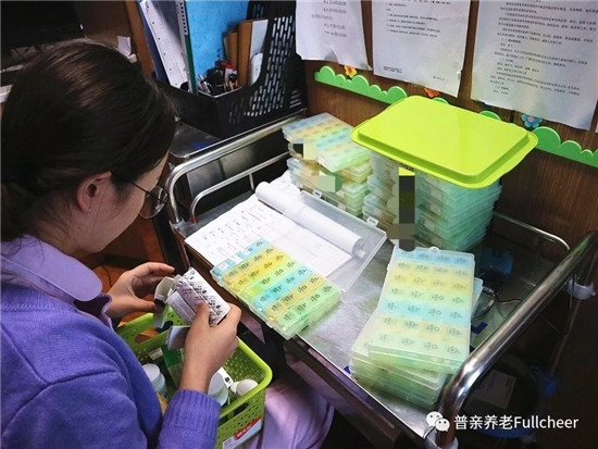 🔼護(hù)士嚴(yán)格確認(rèn)老人一周所需藥物