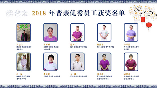 他們是2018年優(yōu)秀員工獲獎(jiǎng)?wù),也是六百多位普親護(hù)理團(tuán)隊(duì)的代表,在普親的各個(gè)機(jī)構(gòu)里繼續(xù)為養(yǎng)老事業(yè)添磚加瓦。雖然身處天南地北,但是在普親,他們就是團(tuán)結(jié)互助的家人,他們的目標(biāo)只有一個(gè):服務(wù)好更多的失能失智老人,讓老人開心,讓家屬滿意。