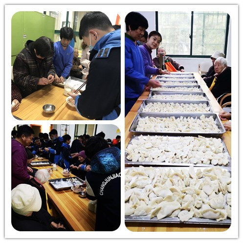 表演結(jié)束,他們還和老人一起包餃子,慶團(tuán)圓。用餃子皮包上營(yíng)養(yǎng)又美味的真材實(shí)料,大家齊心協(xié)力,形狀各異的餃子擺了滿滿十大盆。隨著熱氣騰騰的餃子出鍋,輕輕咬一口,溫暖從嘴傳到心。