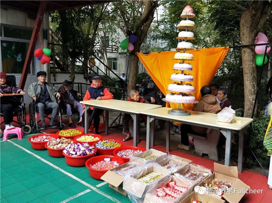 說起蛋糕和水果,這讓我想起了某次生日會的盛大場景:志愿者給老人們帶來了9層的大蛋糕,惹得老人們開心不已。
