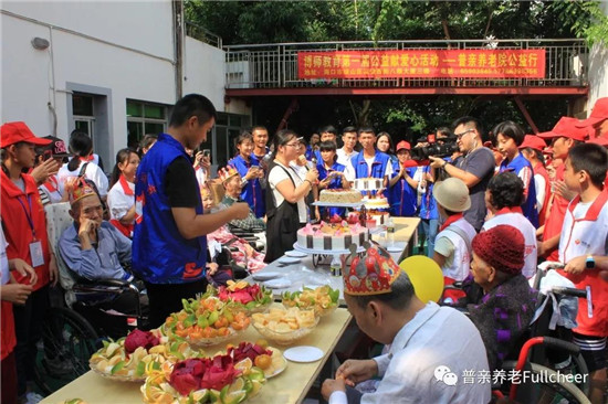 老人們過生日,志愿者一直都是不能缺少的角色。