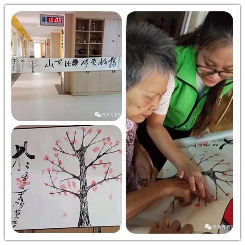 ▲?谑衅沼H第二老年養(yǎng)護(hù)院的社工組織院內(nèi)老人一起用指紋點(diǎn)亮普親樹(shù),繪成這幅祝福長(zhǎng)卷。