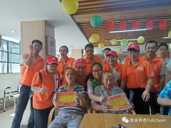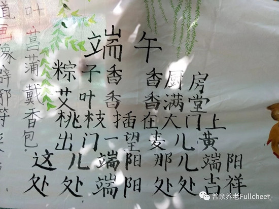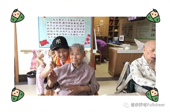 普親老年養(yǎng)護(hù)院同樣開(kāi)展了一場(chǎng)“快樂(lè)頑童,縱情端午”的主題活動(dòng),活動(dòng)邀請(qǐng)到了湖南女子學(xué)院的志愿者們,他們?yōu)闋敔斈棠處?lái)了精彩的詩(shī)詞朗誦、啦啦操、手語(yǔ)表演、紅歌串燒等,同時(shí)還組織了趣味的端午知識(shí)問(wèn)答,易爺爺,譚奶奶,袁叔叔就通過(guò)知識(shí)問(wèn)答贏得了端午小禮品,看到老寶貝們甜甜的笑容,“溫暖的是我們這些小寶貝的心!