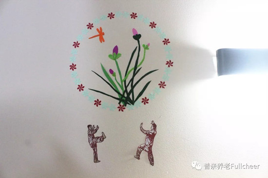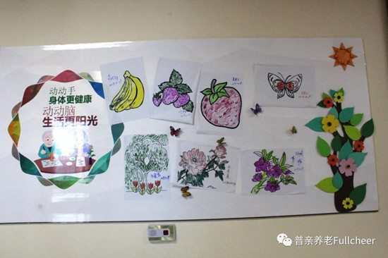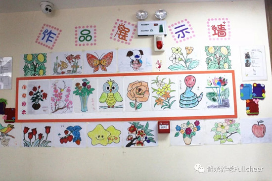 老人的活動安排里每周都會有手工、美術(shù)課,從花草樹木到蟲鳥魚獸,都會成為課程的學(xué)習(xí)內(nèi)容,優(yōu)秀的作品不僅會張貼在老人的房間內(nèi),也會被挑選出來展示在大家;顒拥墓矃^(qū)域,增強(qiáng)老人的參與感與成就感,讓老人們知道,他們是這個家庭的一份子,他還能有所作為!