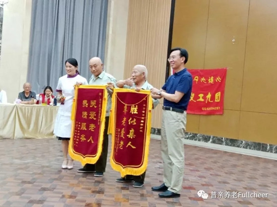 家屬代表為養(yǎng)護(hù)院送上錦旗。對(duì)養(yǎng)護(hù)院來(lái)說(shuō),這既是一份認(rèn)可,也是一種鞭策,專(zhuān)業(yè)的服務(wù)每時(shí)每刻都不能掉以輕心,要用最嚴(yán)格的標(biāo)準(zhǔn)要求自己。