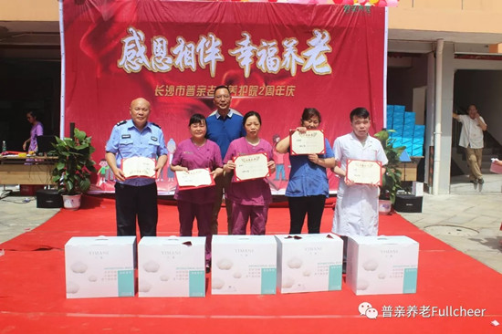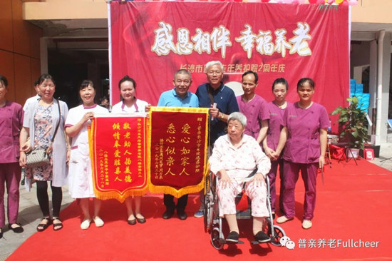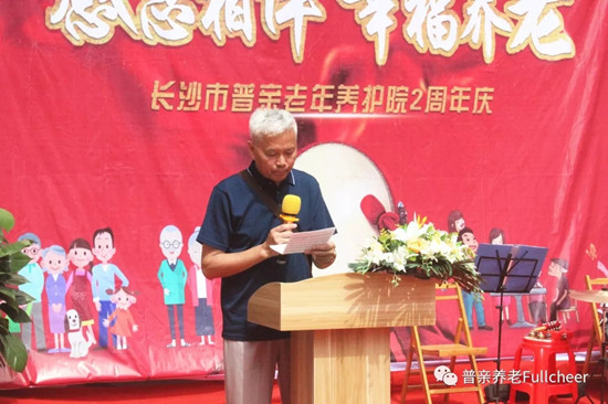 開(kāi)福區(qū)民政局局長(zhǎng)張檢、開(kāi)福區(qū)東風(fēng)路街道書(shū)記毛毅、普親董事長(zhǎng)唐文湘、普親湖南區(qū)域總經(jīng)理姚杰新及總部各中心負(fù)責(zé)人出席周年慶典;養(yǎng)護(hù)院全體員工、在院老人及部分家屬、社會(huì)愛(ài)心人士、志愿者也聚集一堂,共同慶賀養(yǎng)護(hù)院兩周歲生日。