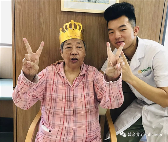 院里有過(guò)月度集體生日的習(xí)俗,老伴兒戴著生日帽開(kāi)心地比yeah~