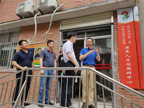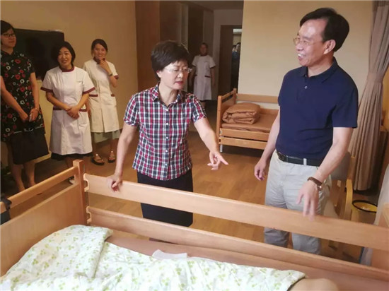 7月18日,蘆淞區(qū)區(qū)委書記王建勇、副書記蔣峰,蘆淞區(qū)民政局局長吳新泉等一行來院開展檢查工作,實(shí)地考察了養(yǎng)護(hù)中心適老化改造建設(shè),重點(diǎn)檢查了日間照料中心,并對(duì)養(yǎng)護(hù)中心提供喘息服務(wù)的相關(guān)資料進(jìn)行了查閱。