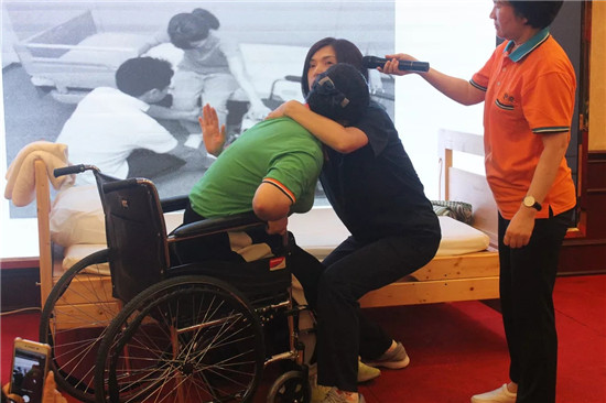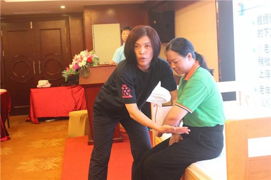 林龍英老師以《減輕介護(hù)人員身體負(fù)擔(dān)的移動(dòng)移乘技巧》為題對(duì)學(xué)員們進(jìn)行了專業(yè)移動(dòng)移乘技巧的培訓(xùn),通過具體的情景設(shè)置,為學(xué)員演示正確的操作方法及背后所蘊(yùn)含的專業(yè)知識(shí),讓學(xué)員們了解容易發(fā)生的誤區(qū)及可能存在的傷害。