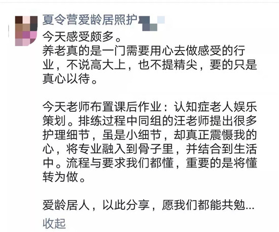 學員能夠有所收獲,能夠帶著學習到的新知識,重新投入到實際的照護與管理工作中去,讓更多的老年人受益,這是普親學院舉辦此次夏令營的初衷。