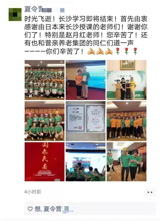 8月17日,為期六天的2019中日老年照護實務訓練夏令營圓滿結束。返回工作崗位后,很多學員在群里、朋友圈分享了此次學習的感悟。