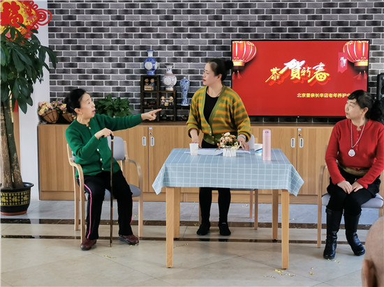 在新年到來之際,我們邀請了長辛店街道古鎮(zhèn)藝術(shù)團(tuán)舞蹈隊(duì)的志愿者阿姨們,阿姨們?nèi)嗣佬纳,歌舞表演美倫美奐,一首《紅紅的中國》拉開元旦聯(lián)歡序幕,緊接著一曲《甜蜜蜜》更是甜到了爺爺奶奶們的心里,純正的北京腔《親情》小品演繹出大條件下的養(yǎng)老現(xiàn)狀,《你笑起來真好看》《我的祖國》完美謝幕!