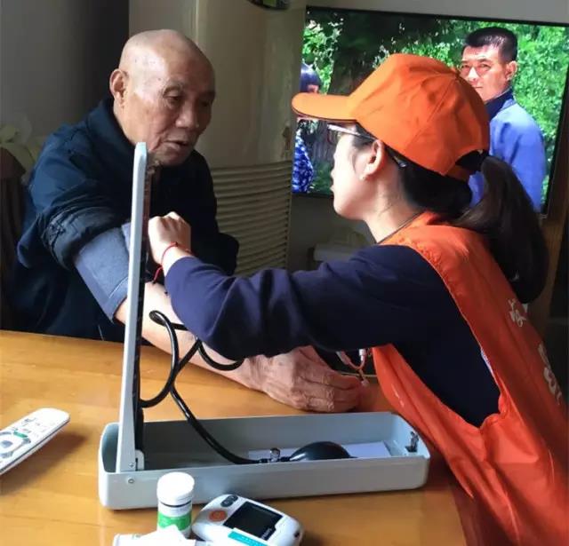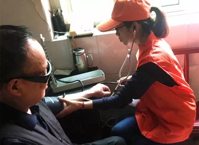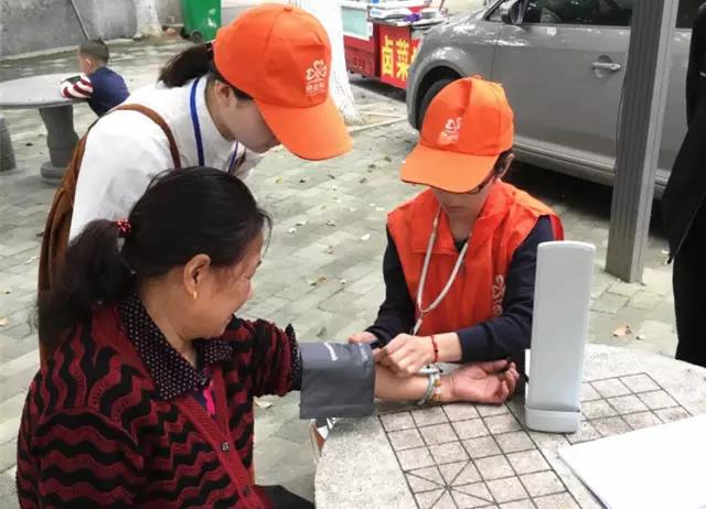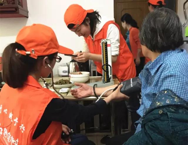 ▲師大醫(yī)學(xué)院志愿者們?yōu)殚L者進(jìn)行血壓、血糖的檢查
