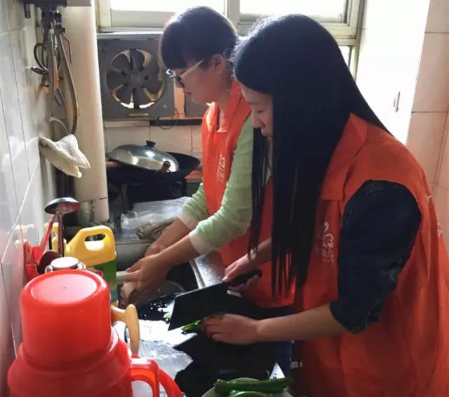 普親樹志愿者們?yōu)槭褯_社區(qū)高齡老人做午飯