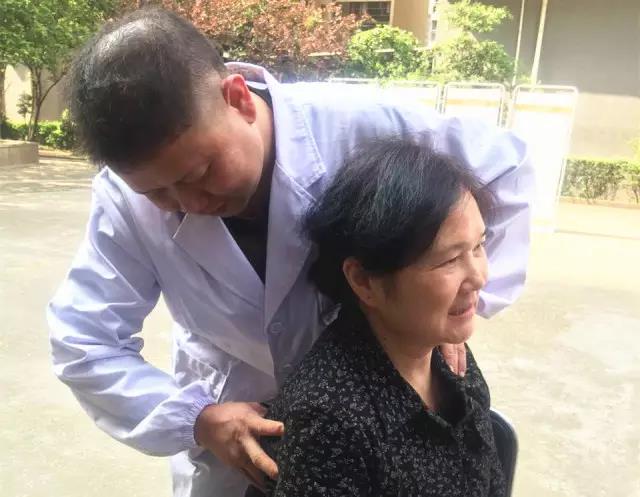 ▲中醫(yī)理療師在為社區(qū)居民推拿