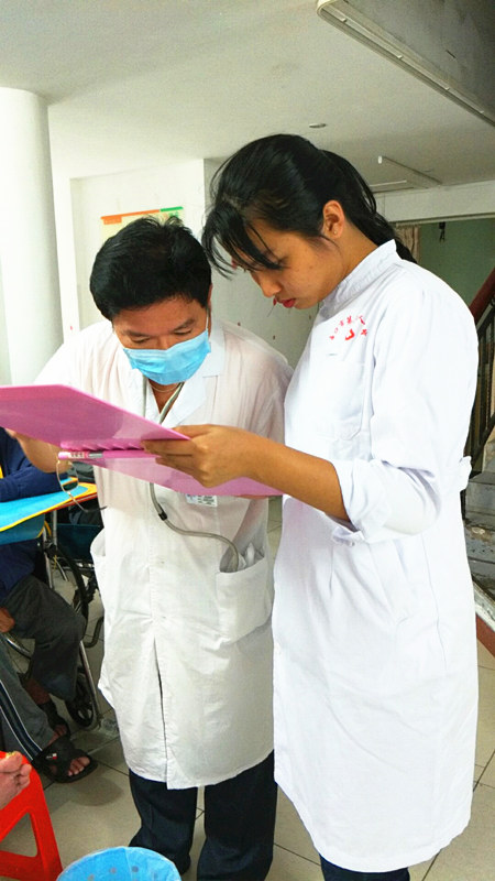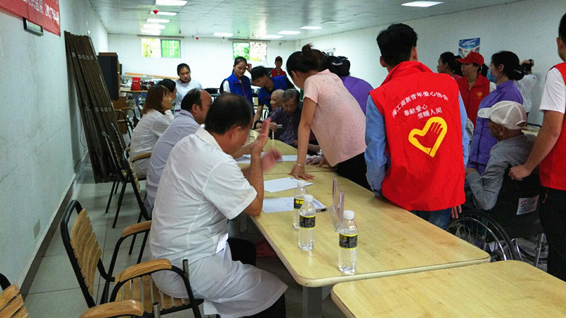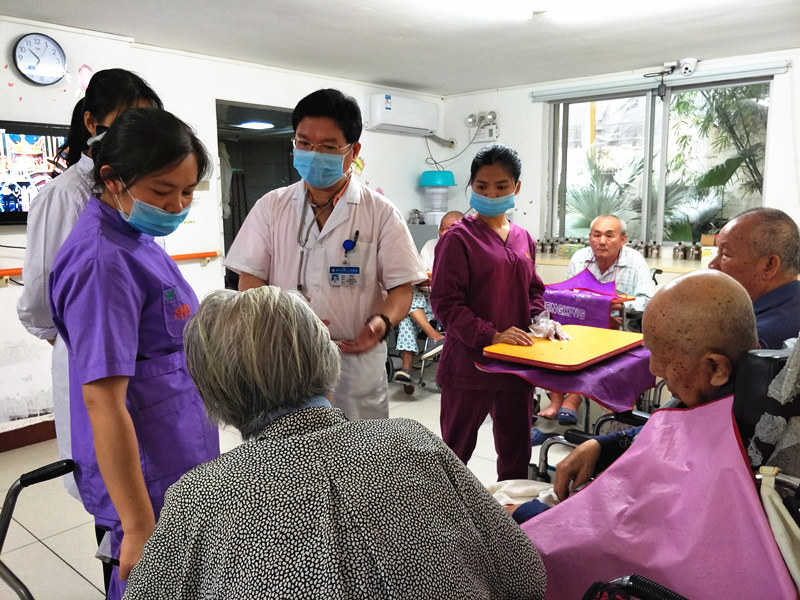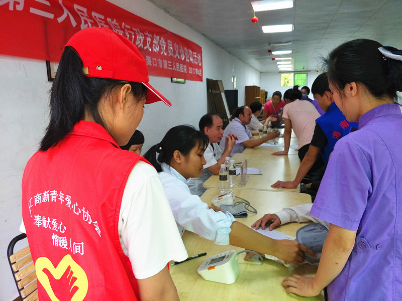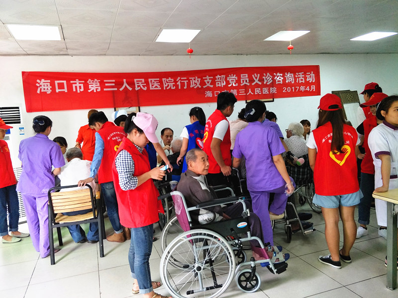 2017年4月22日上午9點(diǎn)-11點(diǎn),中共?谑械谌嗣襻t(yī)院行政支部黨員在瓊山機(jī)構(gòu)開(kāi)展義診,本次活動(dòng)由第三人民醫(yī)院行政支部書(shū)記胡金牛負(fù)責(zé),義診主要包括內(nèi)科、外科、中醫(yī)等項(xiàng)目。其中外科由鄧高鵬(院長(zhǎng)、骨科副主任醫(yī)師)、中醫(yī)由毛新龍(副院長(zhǎng)、主任醫(yī)師)負(fù)責(zé)、內(nèi)科由胡金牛(院長(zhǎng)助理、內(nèi)科副主任)醫(yī)師負(fù)責(zé)、護(hù)理及測(cè)血壓等工作由施秒萍負(fù)責(zé)。衛(wèi)生大掃除由行政支部副書(shū)記負(fù)責(zé),成員由參加義診外的所有行政支部黨員組成。這次是普親與?谑械谌嗣襻t(yī)院簽署醫(yī)養(yǎng)合作協(xié)議后開(kāi)展的首場(chǎng)活動(dòng),獲得醫(yī)院方的高度關(guān)注,派出科室科長(zhǎng)和多名專家坐診。老人們踴躍參與,向主任醫(yī)師講述自己的病情,并對(duì)癥開(kāi)方。專家主任醫(yī)師還親到重度臥床病人旁,詳細(xì)查看老人病歷和病癥,并給出治療和護(hù)理建議。家屬對(duì)普親能積極拓展合作渠道,請(qǐng)來(lái)專業(yè)醫(yī)師診療老人給予高度評(píng)價(jià)!
