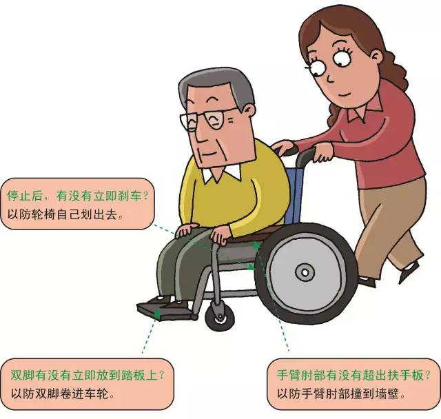 護(hù)理的提高:出發(fā)時(shí)要和患者打好招呼,慢慢地、安靜地推動(dòng)輪椅。