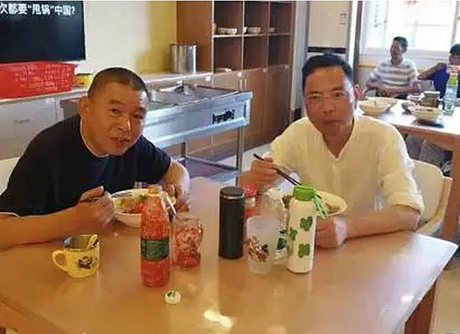 圖 | 老唐(左)和公司管理人員在位于長(zhǎng)沙的機(jī)構(gòu)內(nèi)就餐