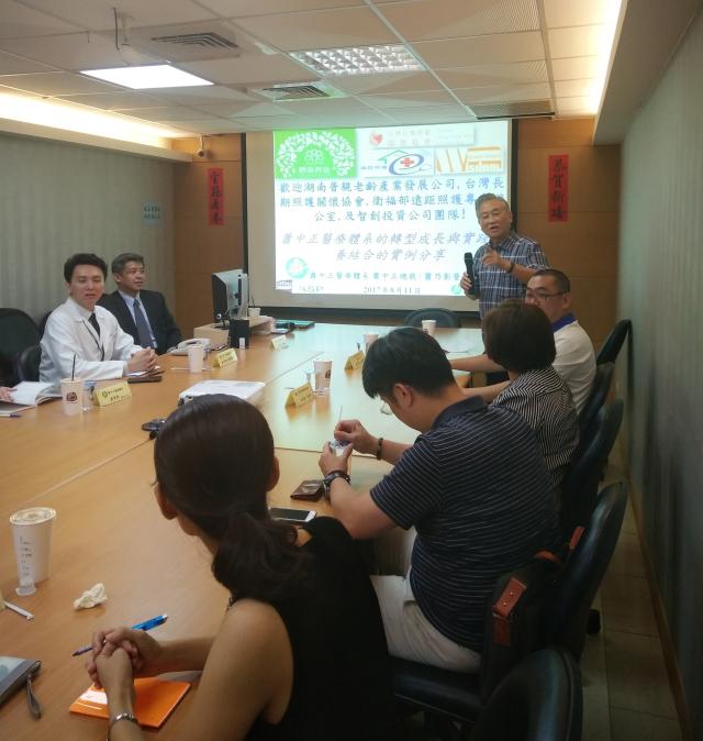 今天一天的時間除了在中午有短暫的困乏感之外,幾乎整天都像打了雞血一樣,不得不說一定是蕭中正醫(yī)療體系、清福醫(yī)院、清福養(yǎng)老院的各位主管、私立貴族老人長期照顧中心的桑主任和智創(chuàng)的賴總如臺北的驕陽一樣的熱情感染了我們。