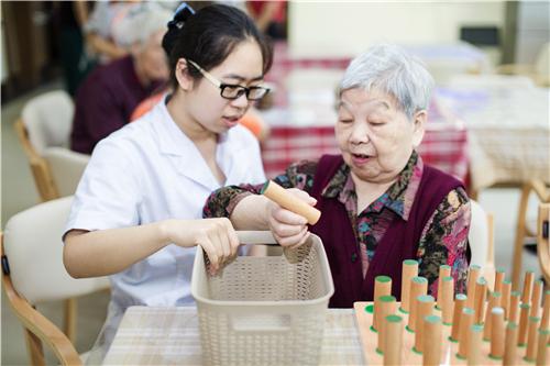 ▲康復(fù)師帶領(lǐng)老人進(jìn)行康復(fù)訓(xùn)練