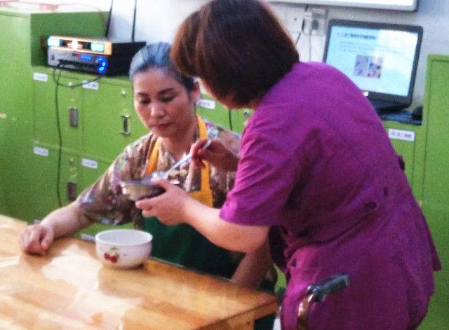 ▲情景模擬阿爾茨海默癥長者在養(yǎng)老院的日常,從日常的生活起居到相關(guān)的失智康復,全面地向現(xiàn)場家屬展示了癡呆老人在養(yǎng)老院的日常,以及護理員與老人之間的有愛互動。